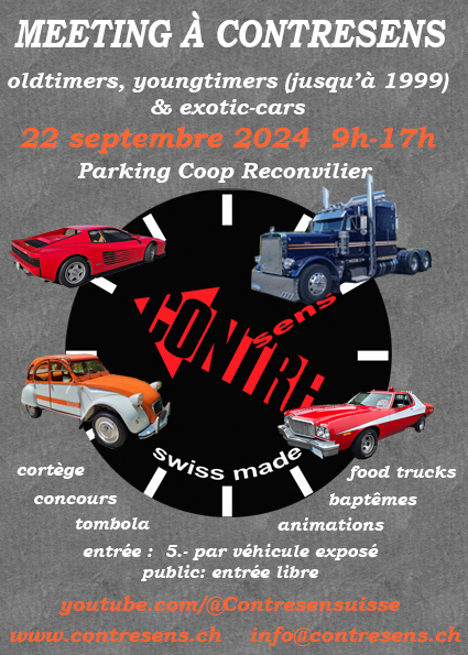 Amateurs de voitures anciennes et de youngtimers, préparez vous à vivre une journée inoubliable ! Le dimanche 22 septembre 2024, le parking COOP de Reconvilier se transformera en véritable paradis pour les passionnés d’automobile lors du deuxième rassemblement Contresens.