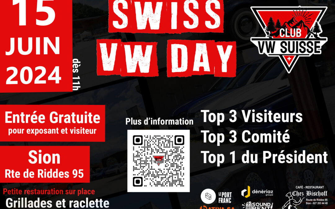 Swiss Vw Day #2 par Thierry Delalay | Mar 28, 2024 Les Inscriptions ont fermées Swiss Vw Day #2 par Club Vw Suisse 1044 1044 people viewed this event. Date et heure 15-06-2024 @ 11:00 à 15-06-2024 Lieu Rte de Riddes 95, 1950 Sion Regarder la vidéo Regarder la vidéo x Partager avec des amis Facebook Twitter Linkedin Xing Pinterest