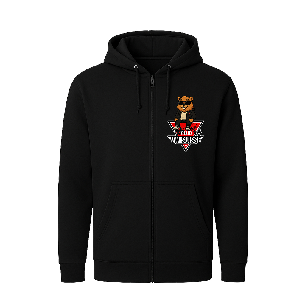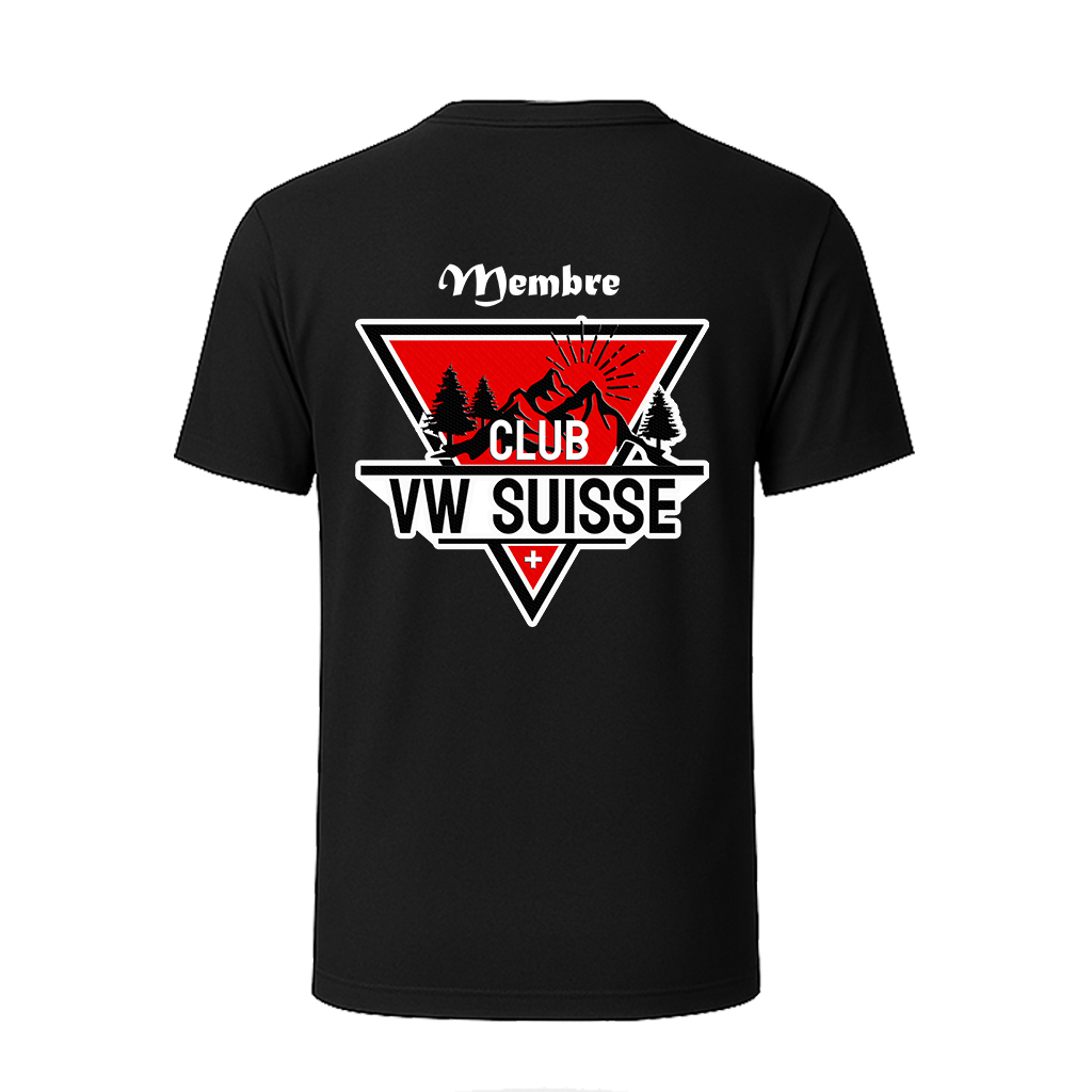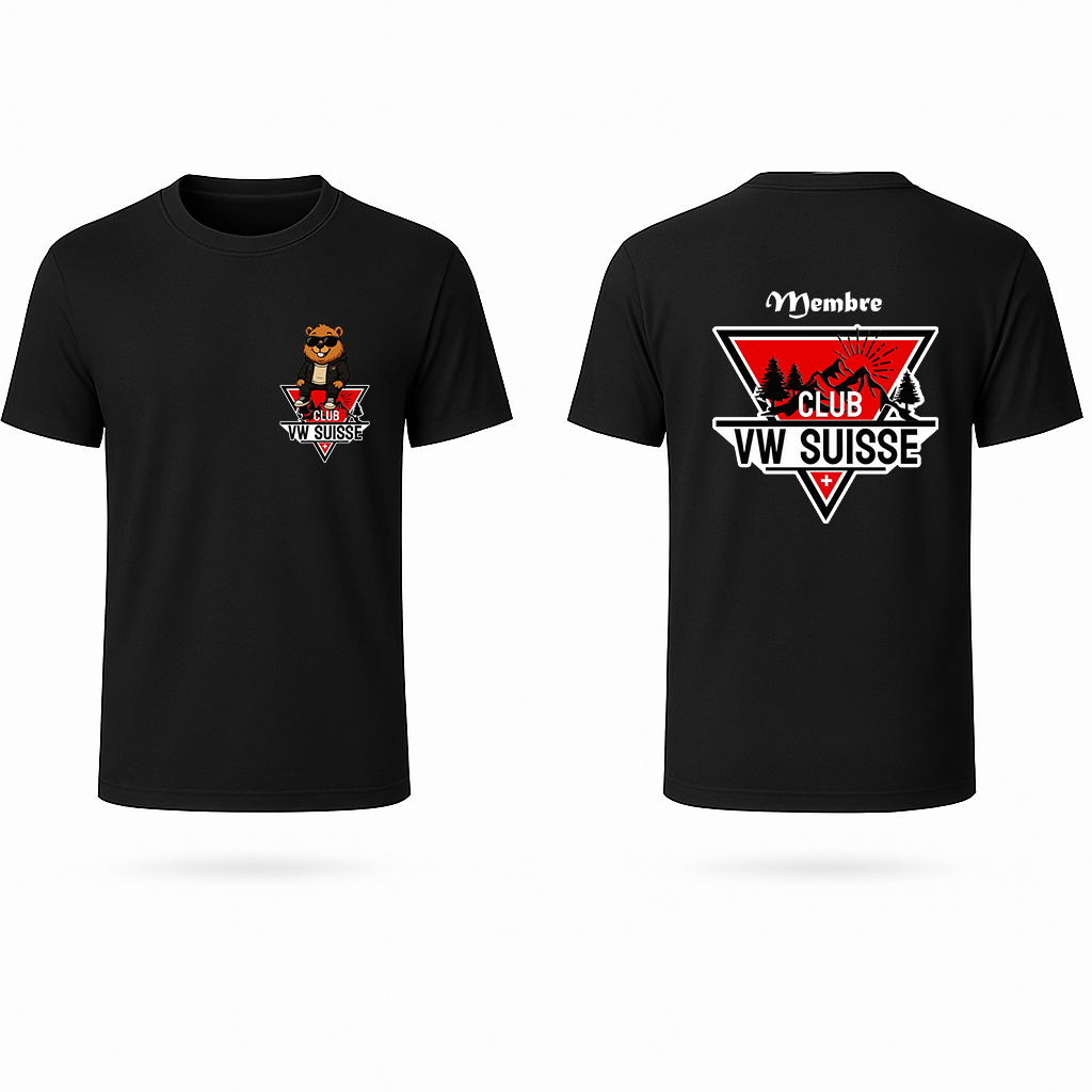 Design unique : Le logo du Club VW Suisse est élégamment imprimé sur le devant, incarnant l’esprit de communauté et la passion des Volkswagen.